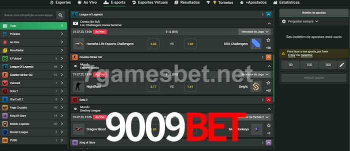 O 9009Bet oferece uma grande seleção de opções de apostas em e-sports com probabilidades competitivas